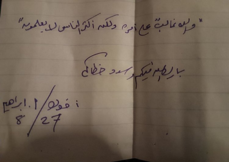 Paylaşılan el yazısı mesajda, şehit Huzeyfe el-Kahlut (Ebu Ubeyde), kardeşi İbrahim’e hitap ederek ailesinin durumu hakkında bilgi sordu. Mesajda, devam eden zorunlu göç nedeniyle ailenin nereye yerleştiğini merak ettiğini ifade etti.